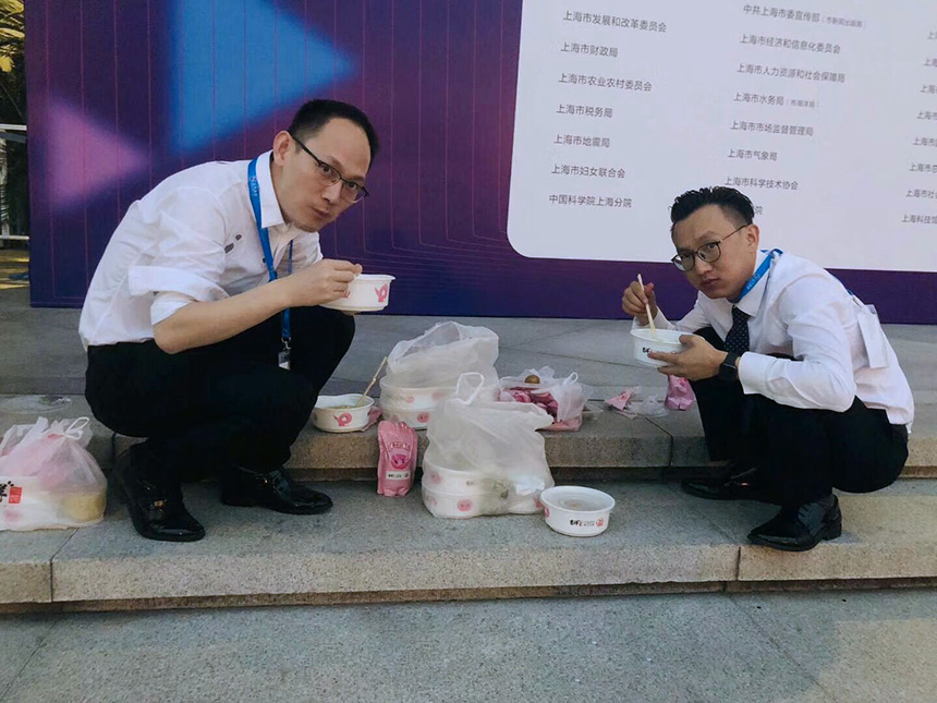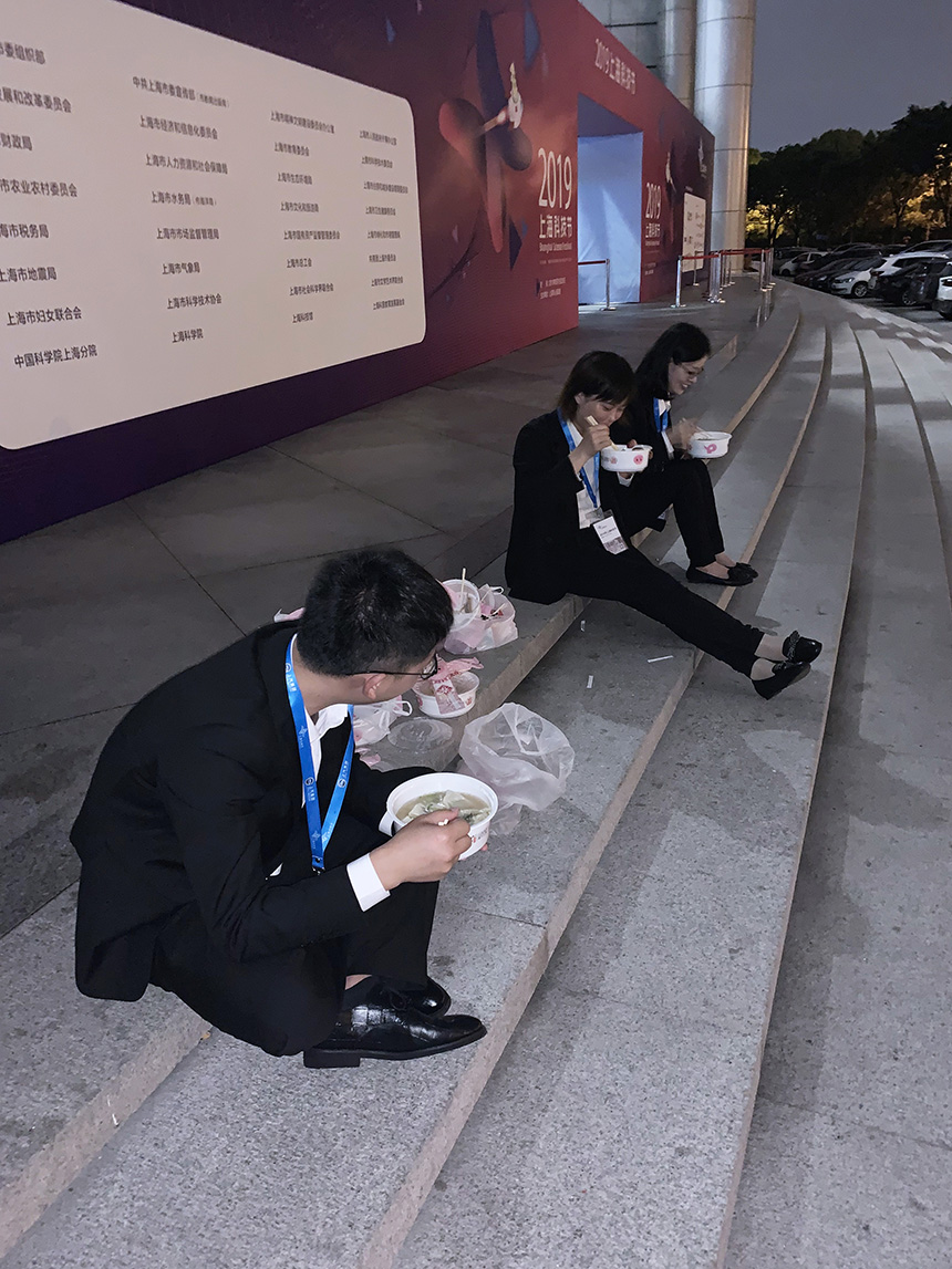 然而,这世界上有许多别人不知道的事。比如为了赶时间,他们吃饭的时候只能席地而坐。