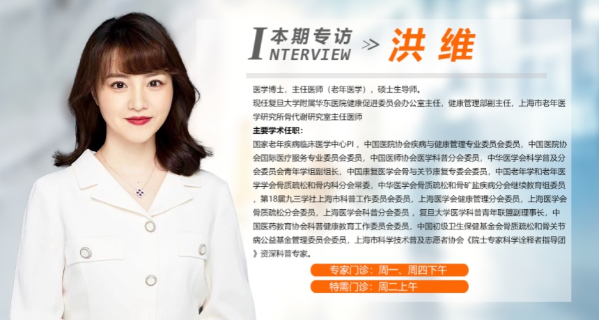 复旦大学附属华东医院健康促进委员会办公室主任、骨松科专家洪维主任医师,作为一名深受老年人喜爱的科普传播者,从医近二十年来一直在用专业知识和满腔热情为传播老年健康知识,提升老年人健康水平而努力着,是大家口中可爱的“老宝宝的小棉袄医生”。