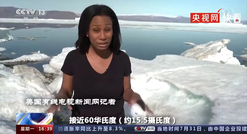 据央视网的最新消息:今年7月,北极圈的温度一度飙升至32.5℃。画面中,一位国外记者虽站在格陵兰岛、背靠冰雪,但却身着一件单薄的T恤,并且还表示:像今天这样的天气,已经暖和到可以穿短袖了。