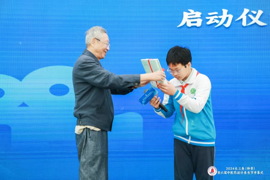 随后,胡锦华先生上台为优秀学生代表上海中医药大学附属闵行晶城中学的姜丰同学赠书,长三角第四届“仲景杯”青少年学中医药文化讲好中医药故事短视频大赛在多位领导的共同见证下正式启动。仲景宛西制药营销公司总经理马云先生表示,仲景大力支持与推进青少年学中医药文化,今年3月还带领长三角“仲景杯”青少年学中医药文化讲好中医药故事短视频大赛获奖选手走进中国凤丹原产地安徽南陵,开启了一次生动有趣的中医中药研学游。仲景还在不断地创新,通过仲景健康节、仲景养生局、仲景乐养局等创意活动弘扬中医药文化,增强公众认知,特别吸引年轻人,推动国潮养生新风尚,同时提升品牌知名度,实现文化传播与商业发展的双赢。