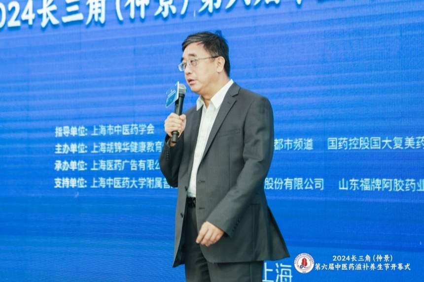 在本届养生节的启动仪式上,杜以发先生代表主办单位致辞,同时宣布“2024长三角(仲景)第六届中医药滋补养生节”正式开幕。上海市卫生健康委员会副主任、上海市保健局局长、上海市中医药学会会长胡鸿毅先生为本次活动特别录制了讲话,代表上海市卫健委、上海市中药管理局、上海市中药学会,也以中华中药学会副会长的身份,对第六届长三角中医养生滋补节的开幕表示衷心的祝贺。还感谢了社会各界和普陀区长征镇的各位领导,长期以来对我们中医药的传承创新发展和文化普及所作出的辛苦的努力和积极的支持!并指出为了促进中医药文化的传播和传承,长三角中医药学会联盟自2021年起举办“长三角青少年学中医药文化大赛”,意在增强青少年的中医药文化自信。中医不仅蕴含丰富的哲学思想,还强调预防和养生,帮助青少年养成良好的生活习惯,提高身体素质。此外,传承中医还可以激发青少年的创新精神,鼓励他们结合现代科技探索新的治疗方法。